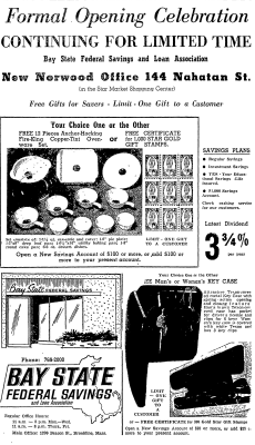 Bay State Federal Savings Formal Opening-This Day In Norwood History-September 7, 1961