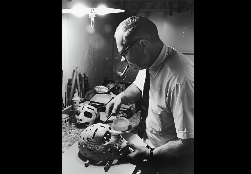 Bruins’ goaltender Ed Johnston is sporting a new face mask today, thanks to Norwood resident Ernie Higgins, whose clientele in the net-minding ranks ranges from Gerry Cheevers and Johnston of…