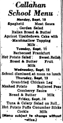 This Day In Norwood History-September 5, 1956-Callahan Elementary School Lunch Menu